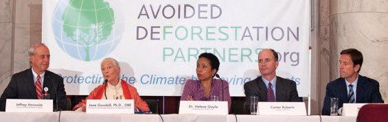 Avoided Deforestation Partners hosted a congressional briefing in support of REDD+ appropriations with distinguished U.S. legislators, including Representative Lowey, and Senators Brownback and Leahy. Honored guests included Dr. Jane Goodall, DBE.